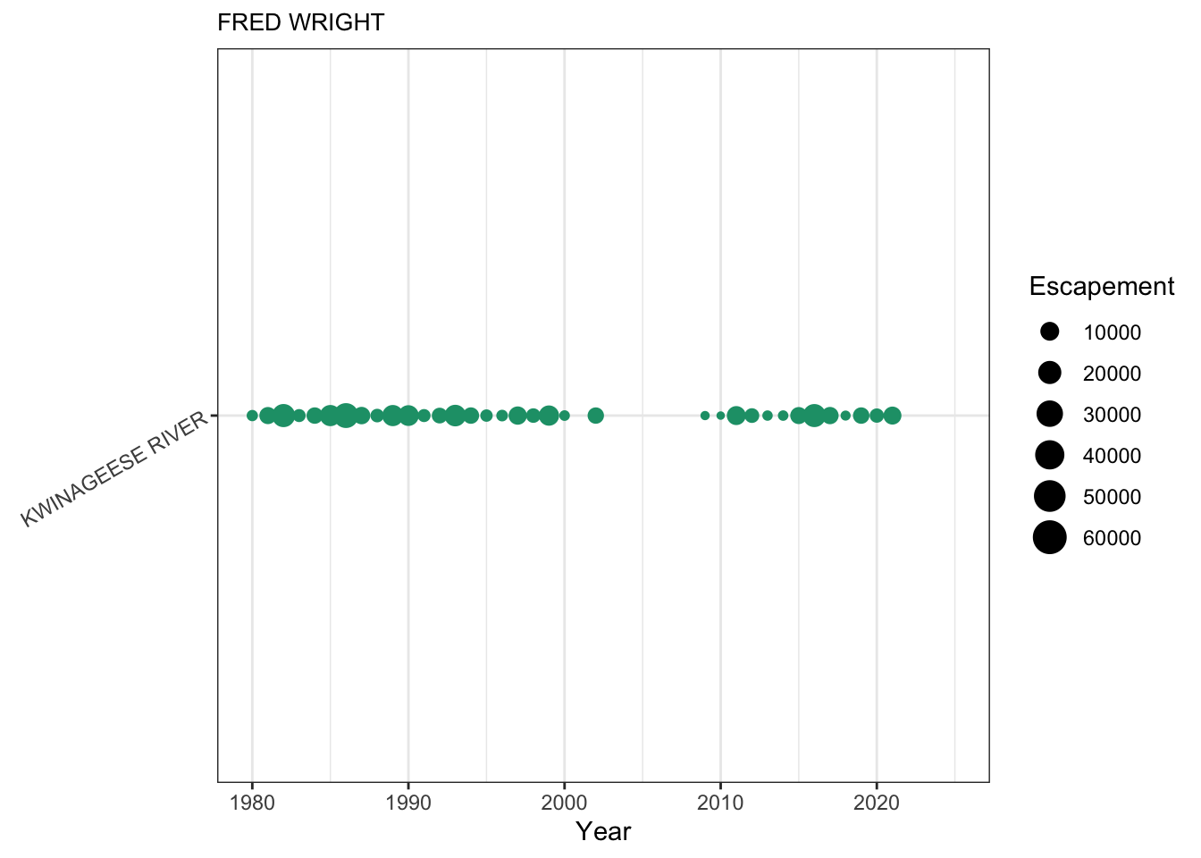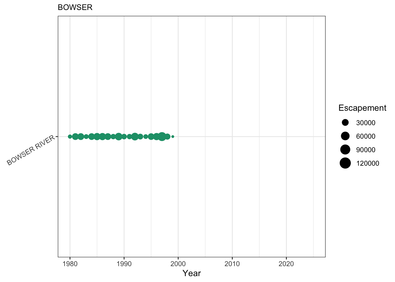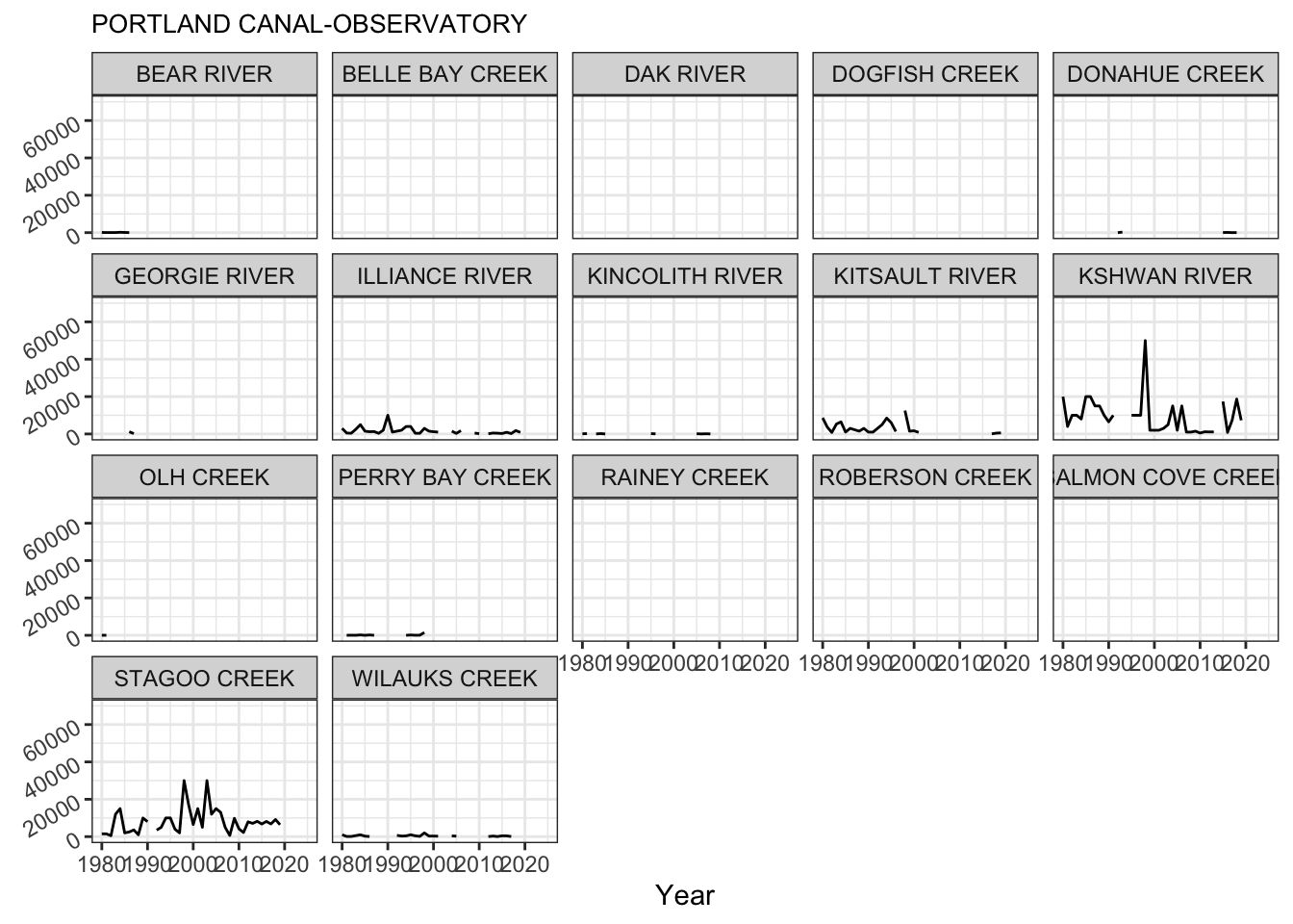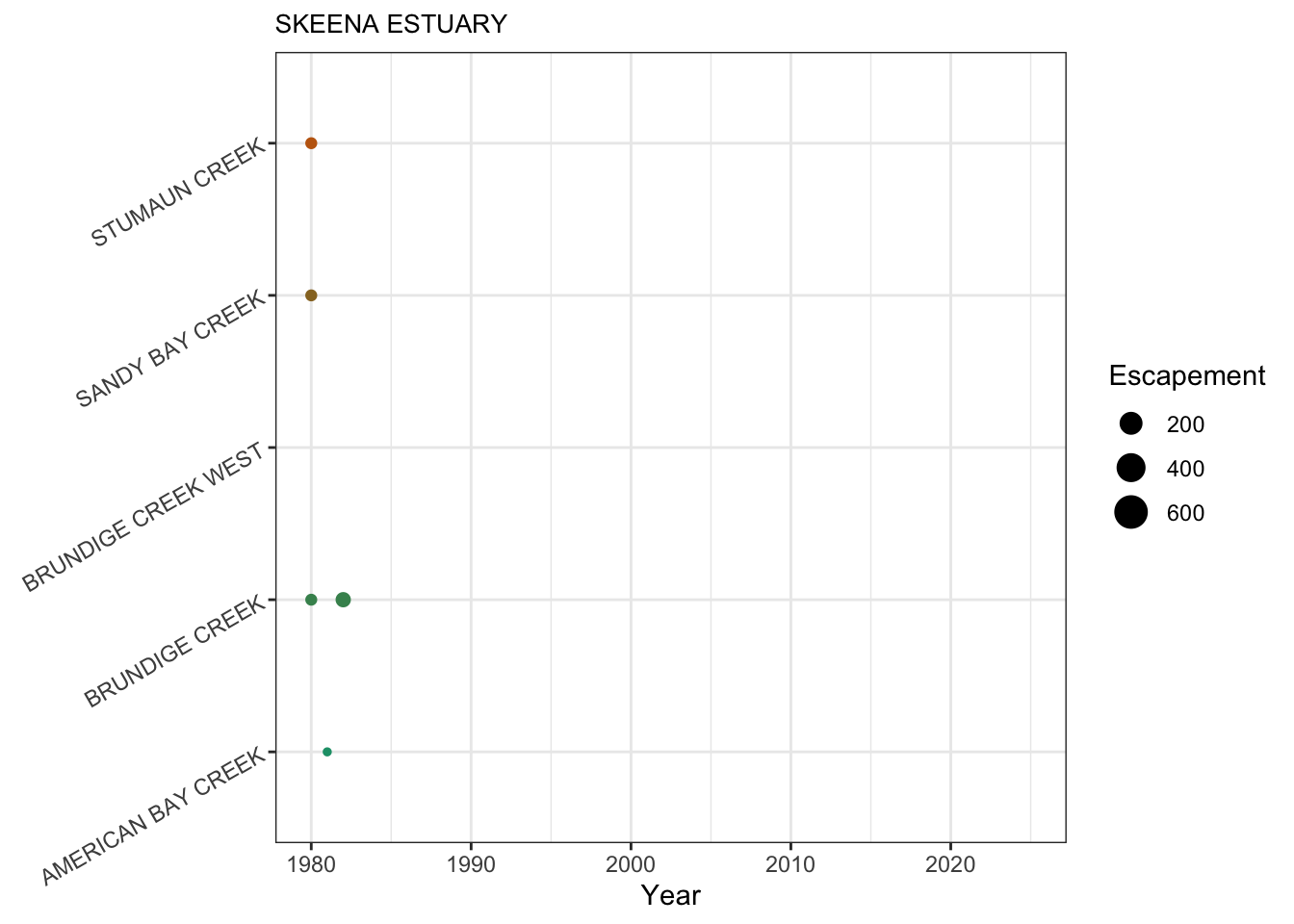 Data on each salmon species’ escapement by Conservation Unit comes from the NUSEDS database.