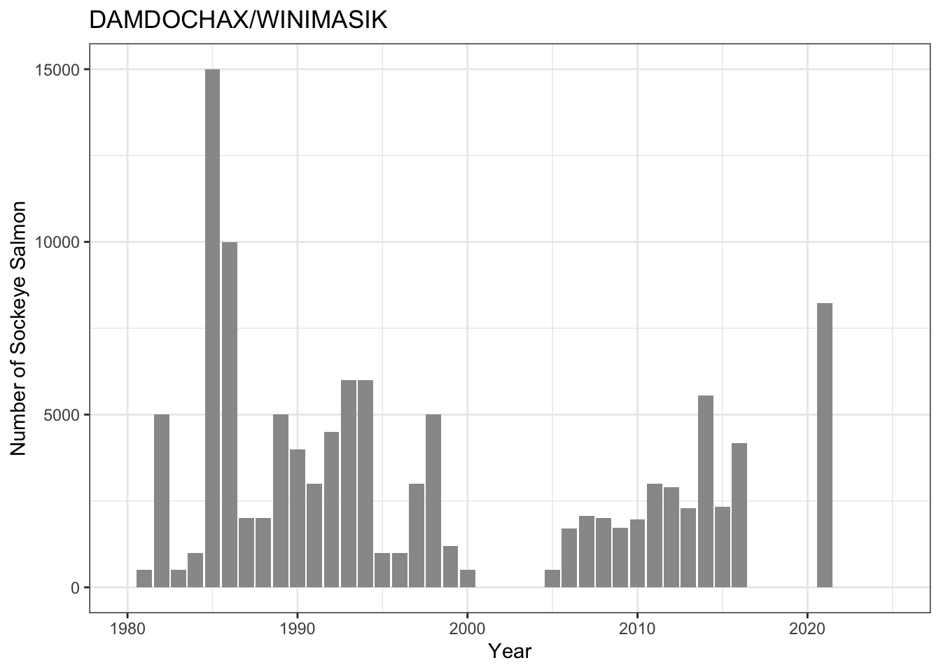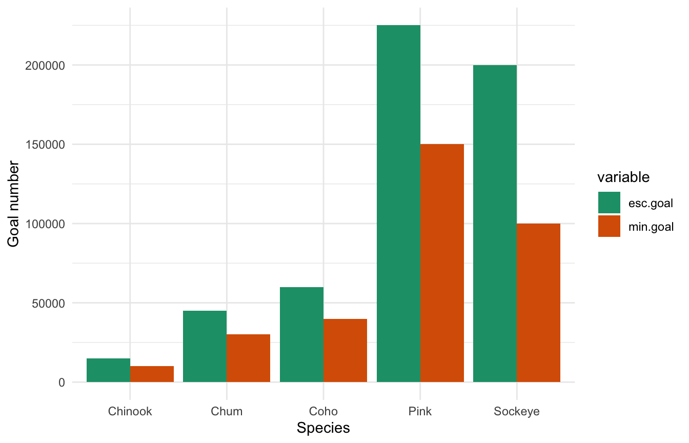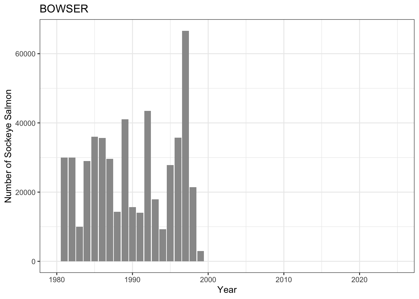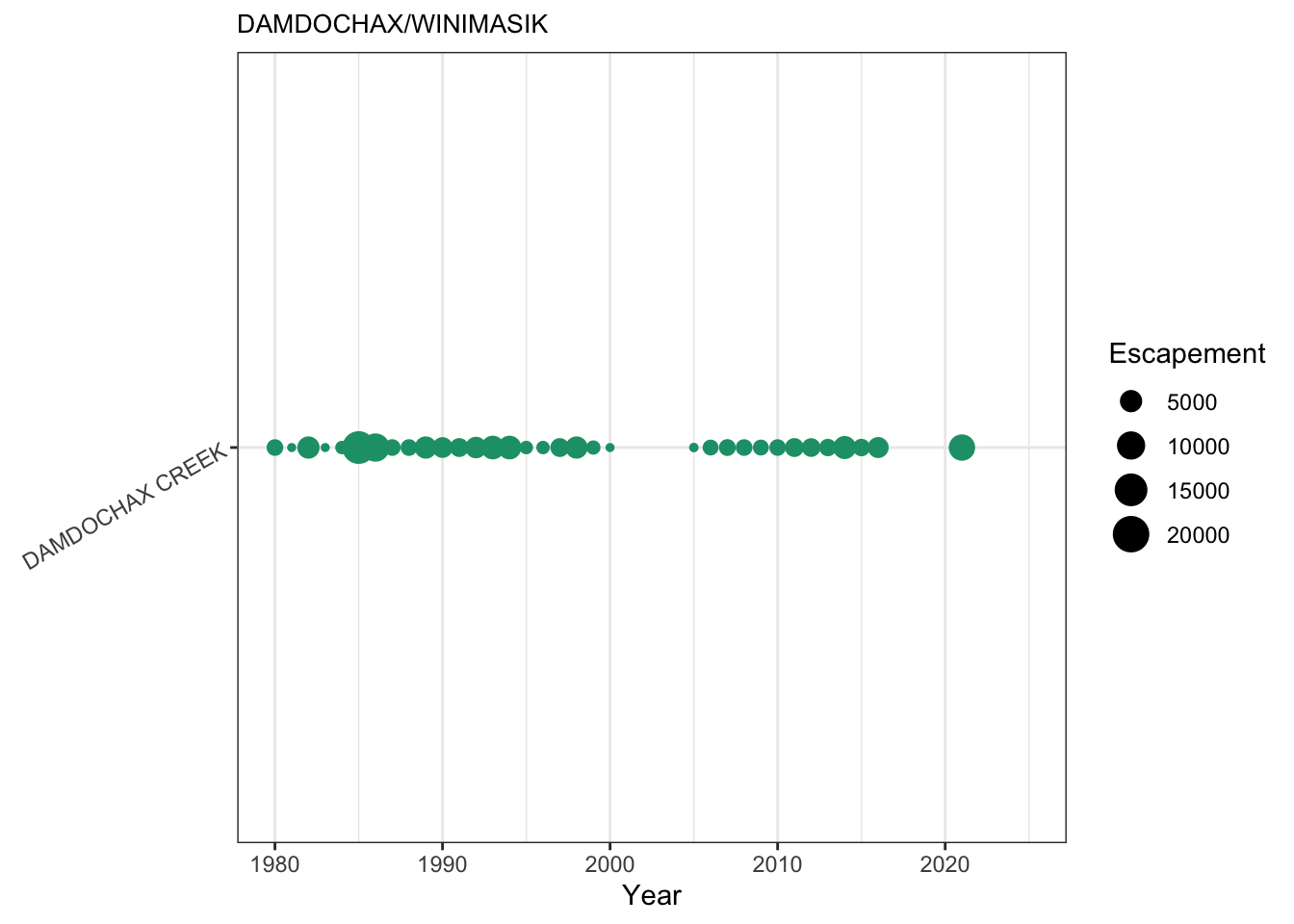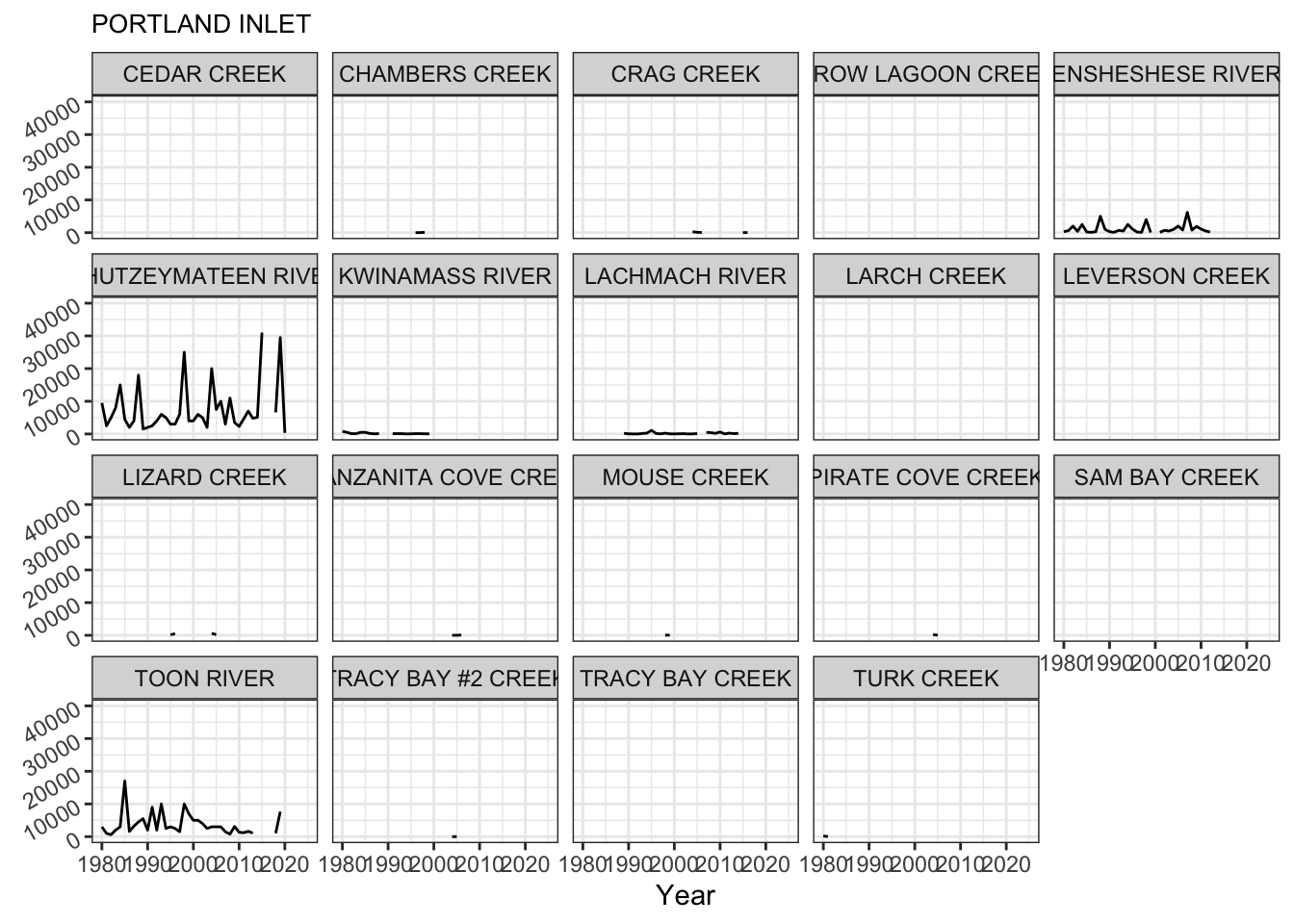 Data on each salmon species’ escapement by Conservation Unit comes from the NUSEDS database.
