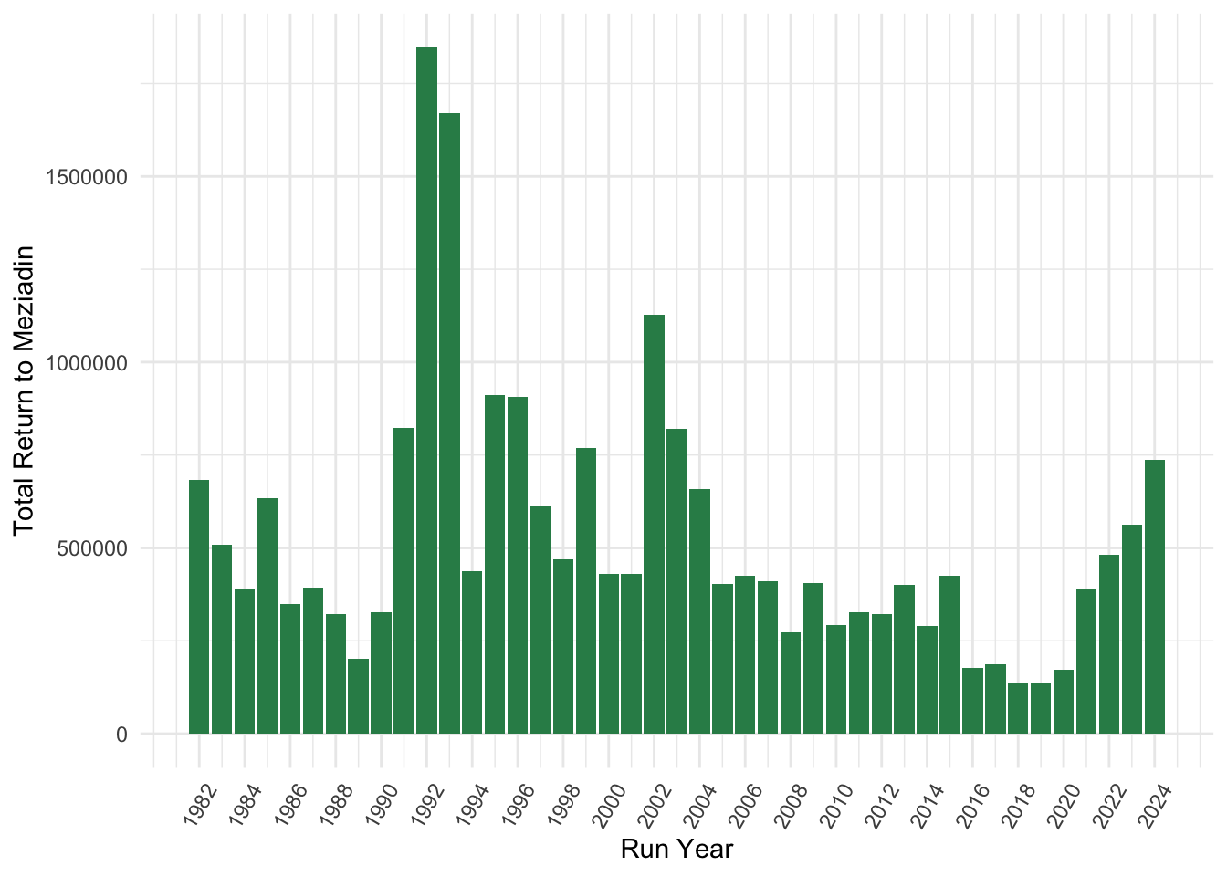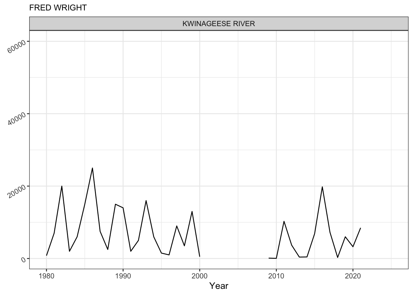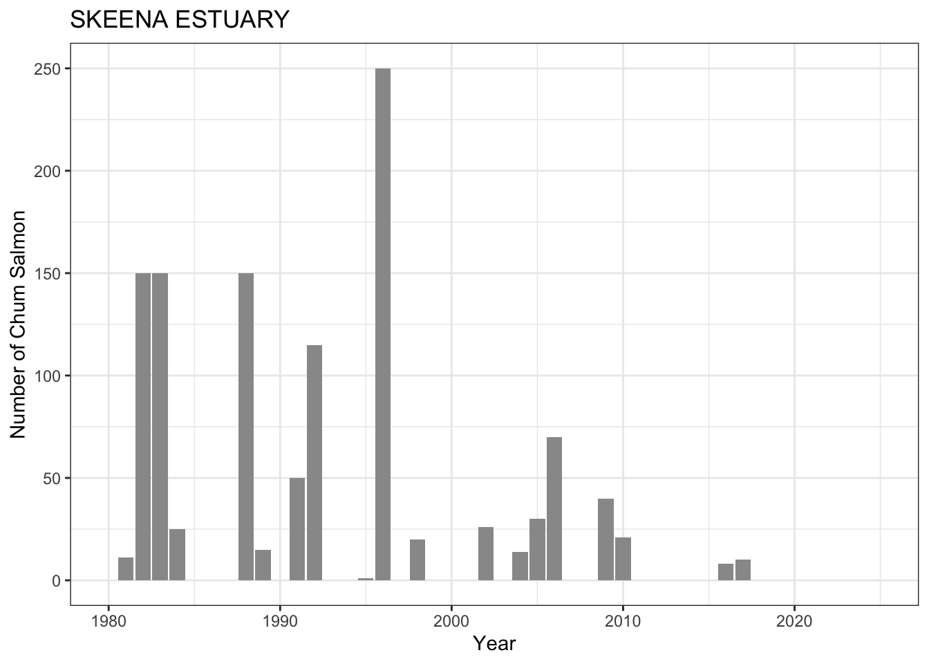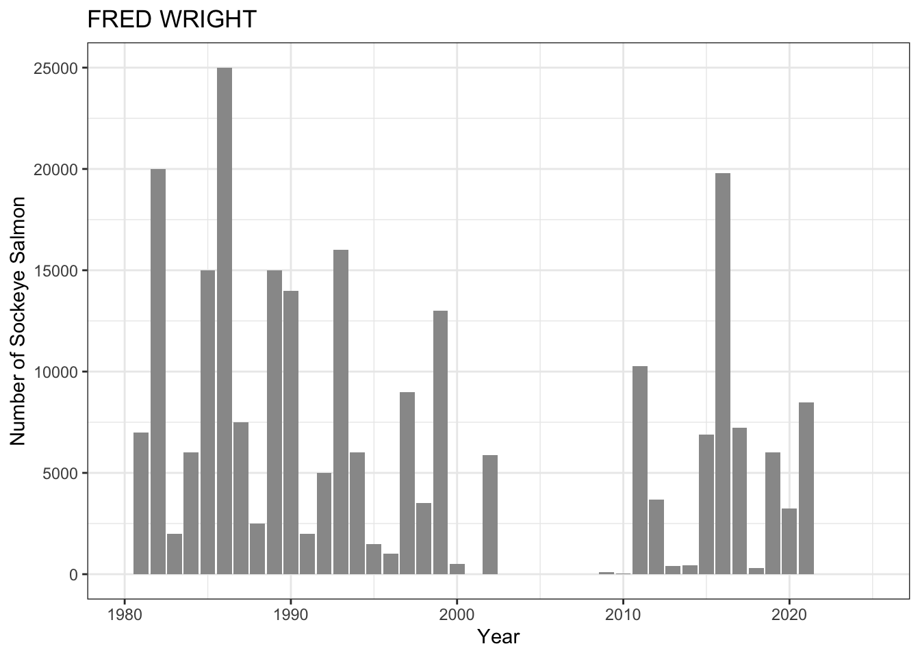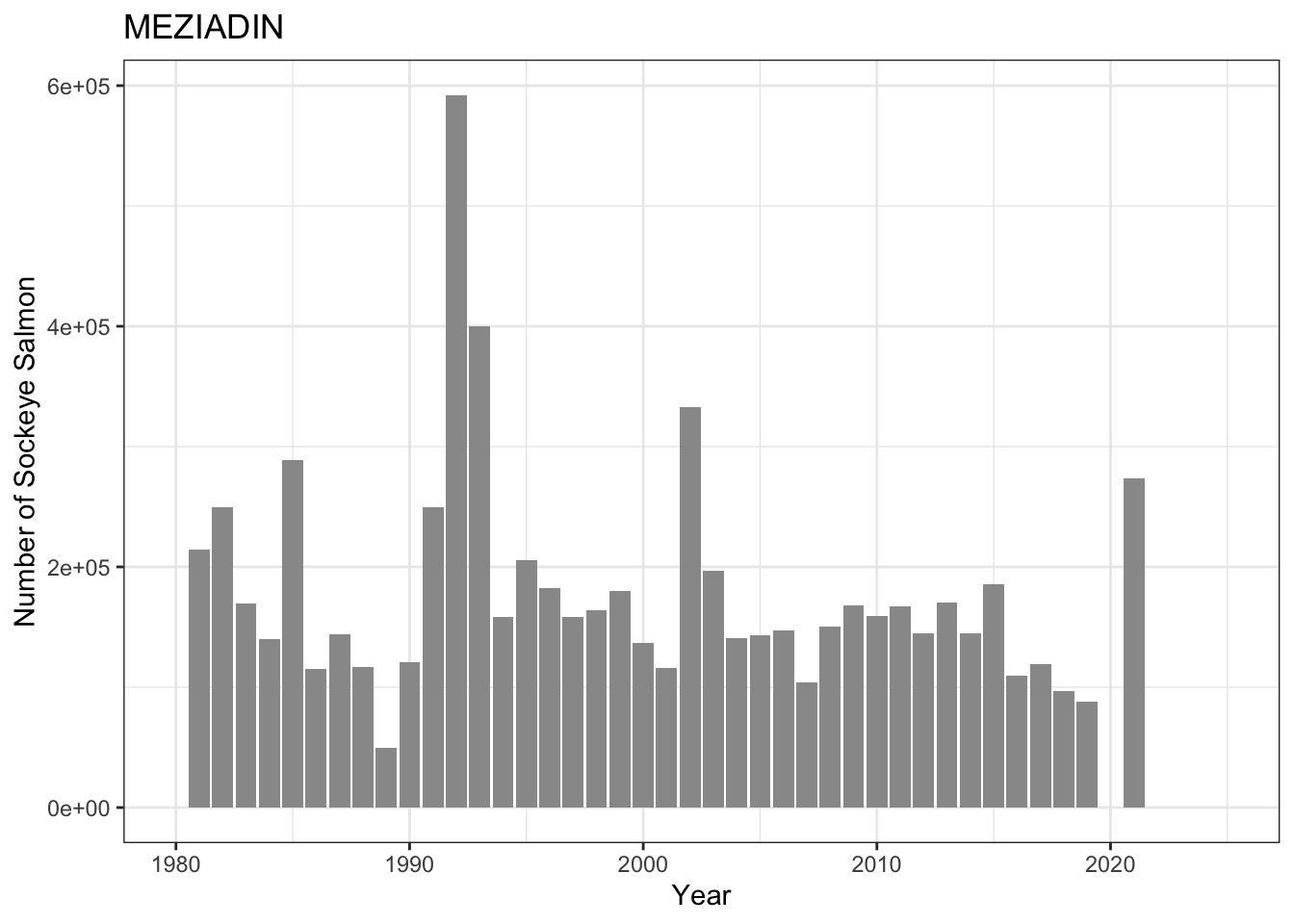 Predicting the sockeye returning to the Meziadin is important for understanding the conservation status of this population. We are working to create a Meziadin-specific return forecast for sockeye salmon using the ForecastR tool.