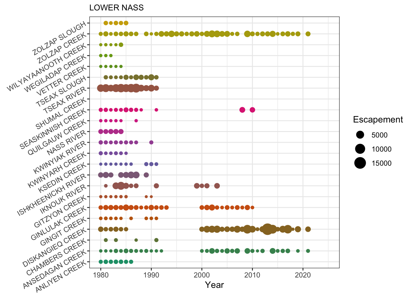 Nisga’a Lisims Government. 2023. 2023 Nass River Salmon Stock Assessment Update - Friday, 14 July. Public update from the Nisga’a Lisims Government Fisheries and Wildlife Department.